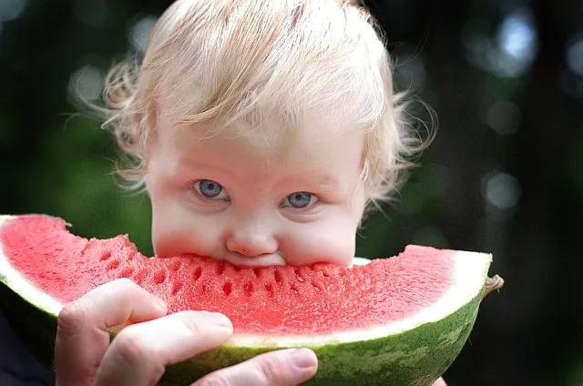 This picture is of my daughter Laila, taken this past June by my sister-in-law. We were over at my in laws for dinner and we brought watermelon. My husband sliced it up and we headed outside to enjoy it. He was eating his piece when Laila started crying, so went over and picked her up. He offered her a bite of his watermelon and she tried it! He didn't get to eat anymore of it! She LOVED it. Alecia snapped this picture of Laila enjoying her first piece of watermelon and we thought it was priceless!!