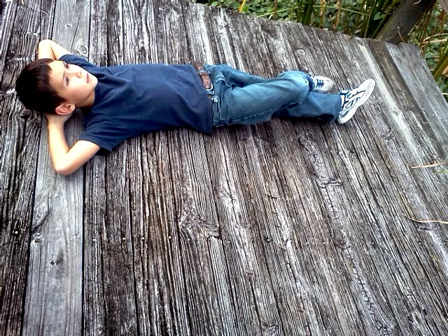 This picture is of my little brother, at a dock in avon park. He looks so lost in something somewhere ....