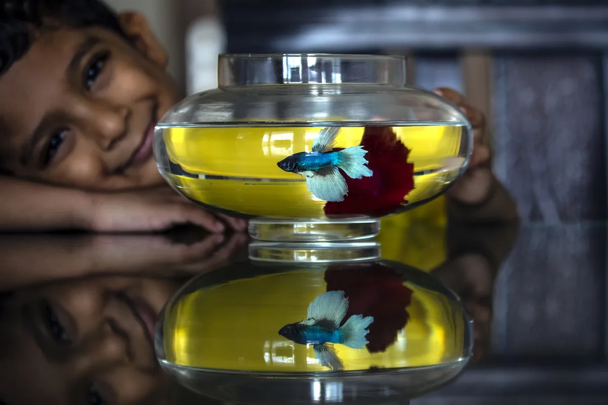 A positive outlook on things can make even a COVID-19 quarantine day seem great! My son loves his pet fishes “Meen” and “Sakana” and decided to spend some time with them today talking to them and sharing a laugh together!