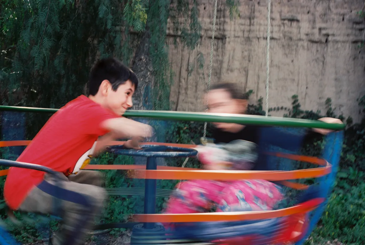 My nephews got in the roundabout and I decided to start spinning fastly so I could get some motion blur. One of them started to break the speed and what I got was an amazing shot with him focused in the center of the action.