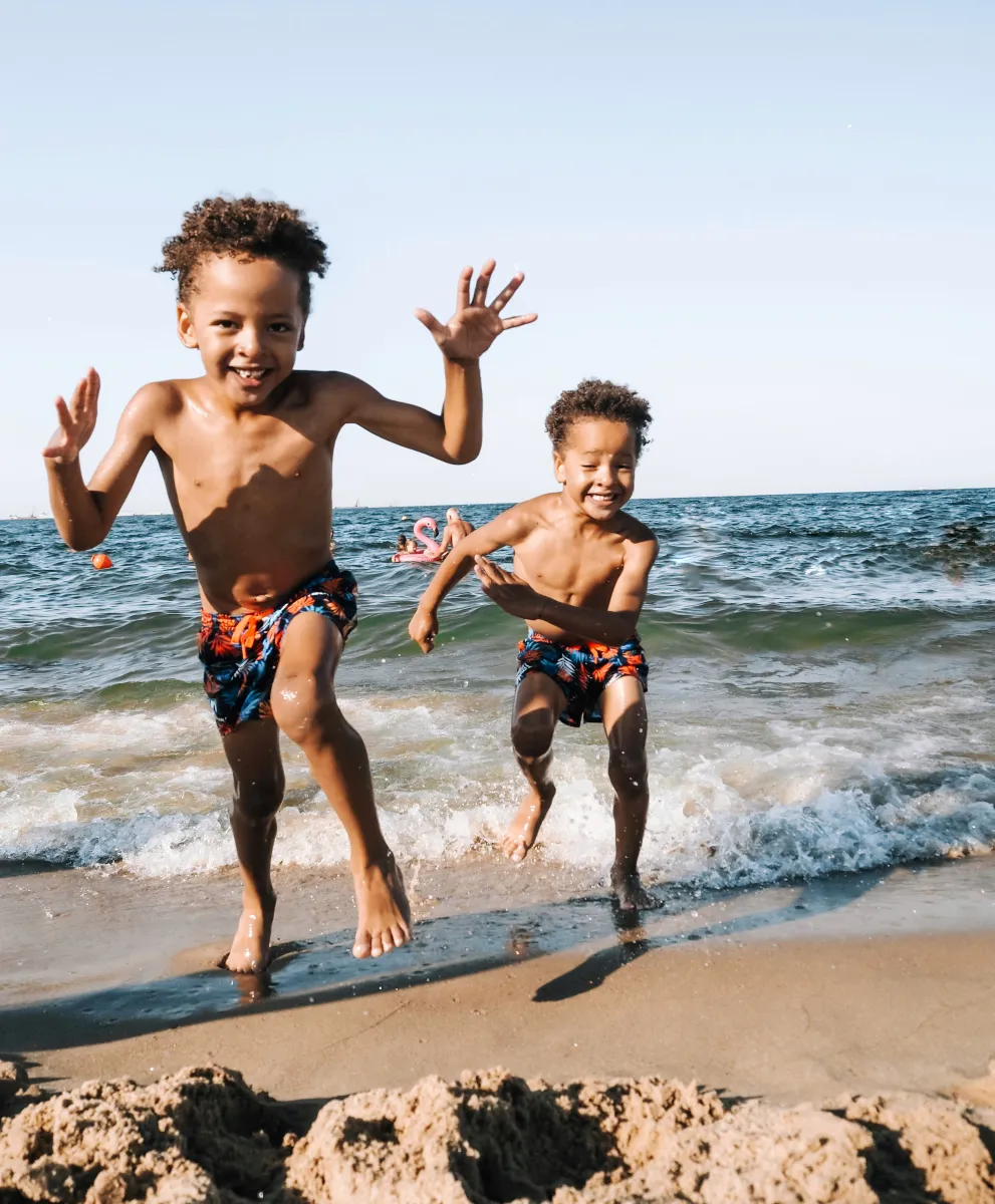 It's a candid moment of summer. Children playing in the turquoise water under the blazing sun.