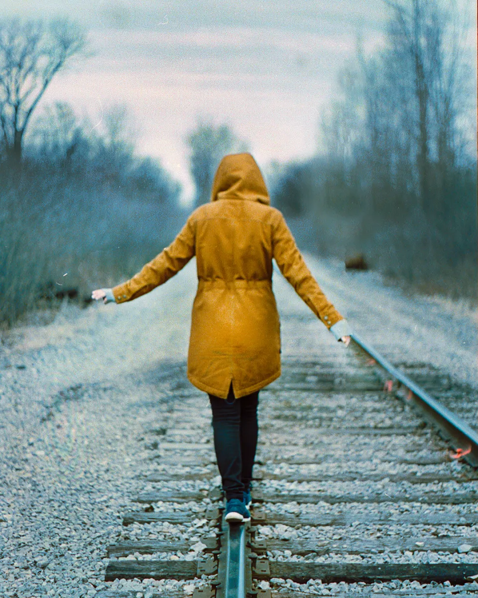 This photo was one of the last frames I took on my first ever roll of Kodak film, in my first ever analog camera. Lazing around some train tracks, my partner was keeping busy while I metered some nearby plant-life. Turning around, I found them balancing on the railing and snapped this picture.