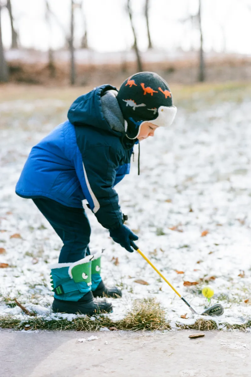 Some complain about the snow and cold but this photo is a reminder you can do what you love, even in the snow :) My son is almost 4 but for his 3rd birthday he asked for a set of golf clubs and hasn’t put them down since - even in our chilly Wisconsin winter!