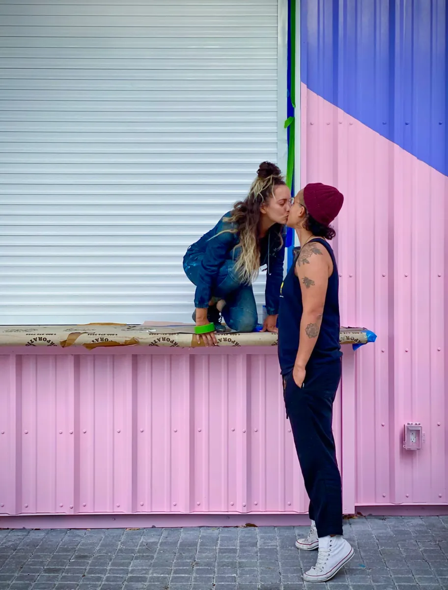 In this moment my wife Xue and friend Kendra came by to visit me on site during a mural production in Wynwood, Miami. Kendra captured the sweet moment of us saying “bye, see you later at home” with a kiss.