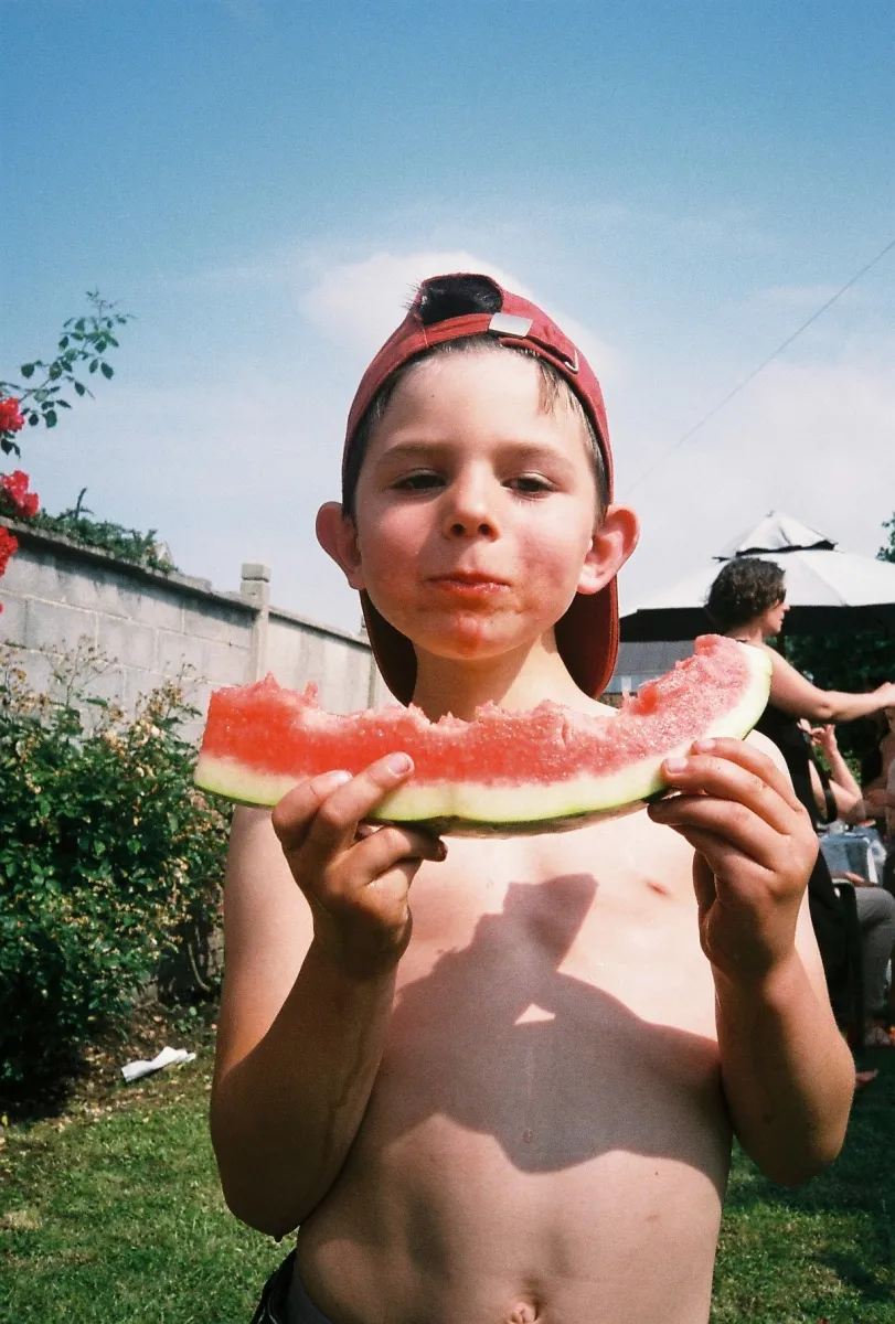 Sunday afternoon of may with the family showing the art of eating watermelon