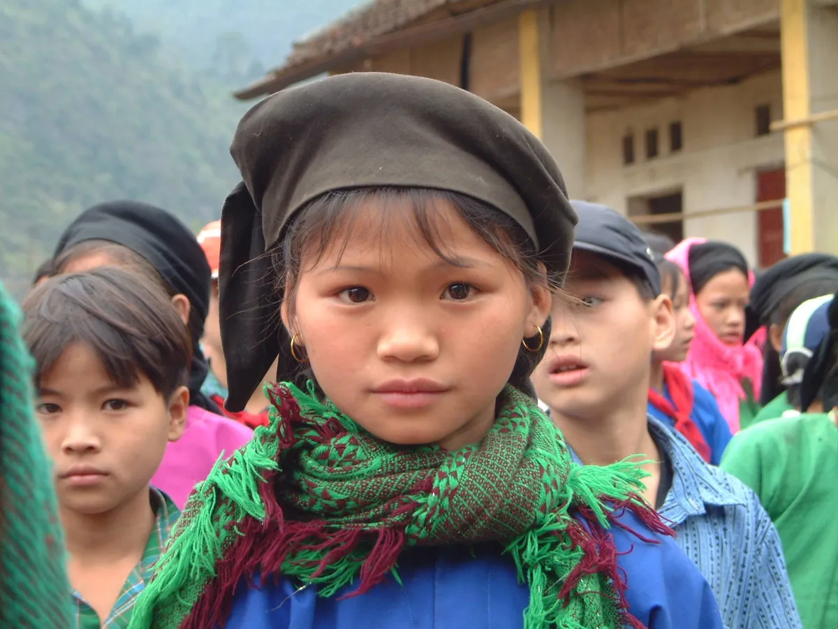 Portrait of a Mong schoolgirl in the remote village of Sy Hai, North Vietnam on the Chinese border.