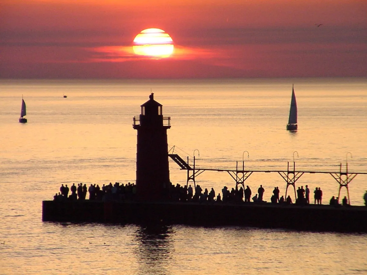 To take this picture I was on a bluff overlooking the lighthouse in South Haven, MI. Everybody wanted to get in the picture.