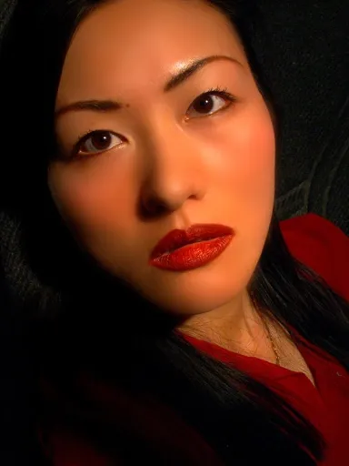 Night shot of my daughter, Courtney, looking out the window. Back lighting is from a street lamp. No filters were used in making this image. Greenish cast was created when the photo lab processed the slide film as print film.