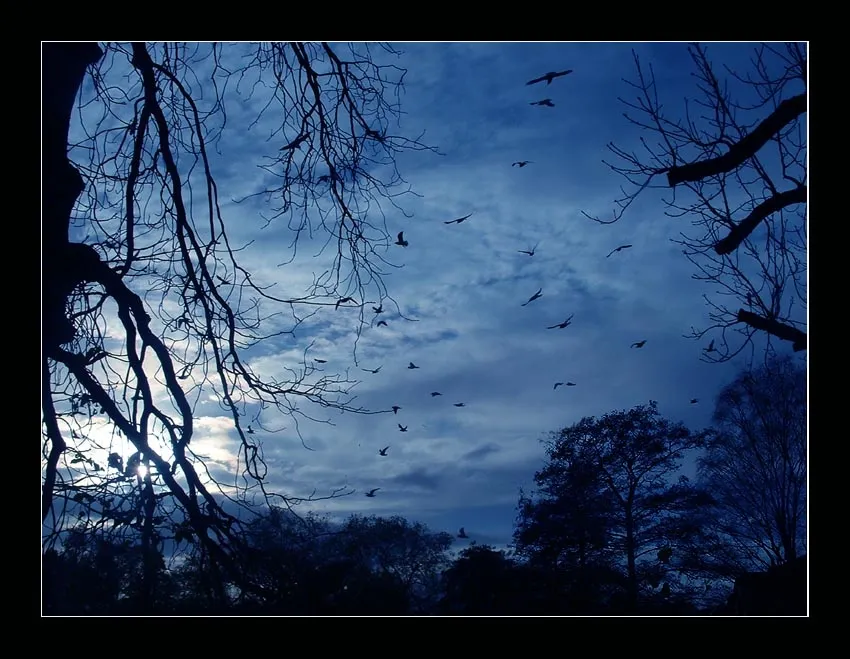 When I saw this photo I immediately thought of Alfred Hitchcock's movie, "The Birds." I love this spooky scene!