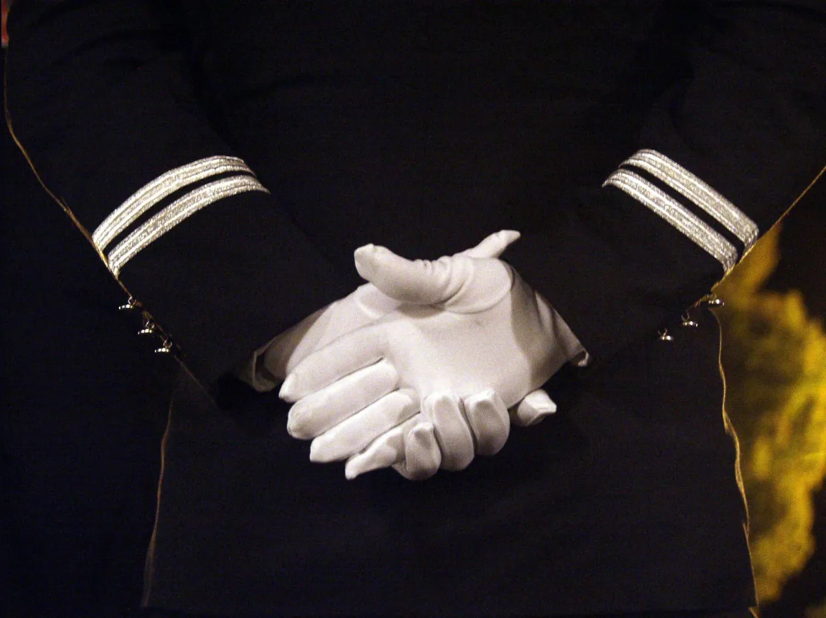 The somber tone of an evening remembrance ceremony was set by this firefighter in dress uniform.