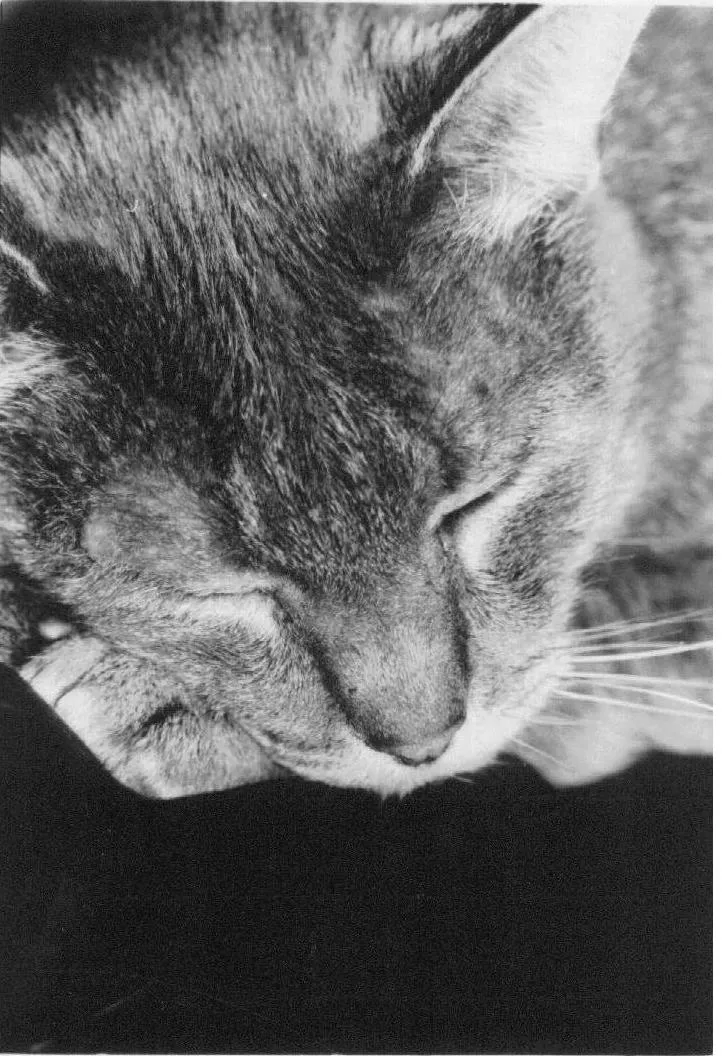 My cat, Mr.I, was a model for a photo project I did a few months ago. He quickly lost interest in the camera and fell asleep -- this is when I took my best picture of him. He is my special companion, and is loved by everyone I know. =^..^=