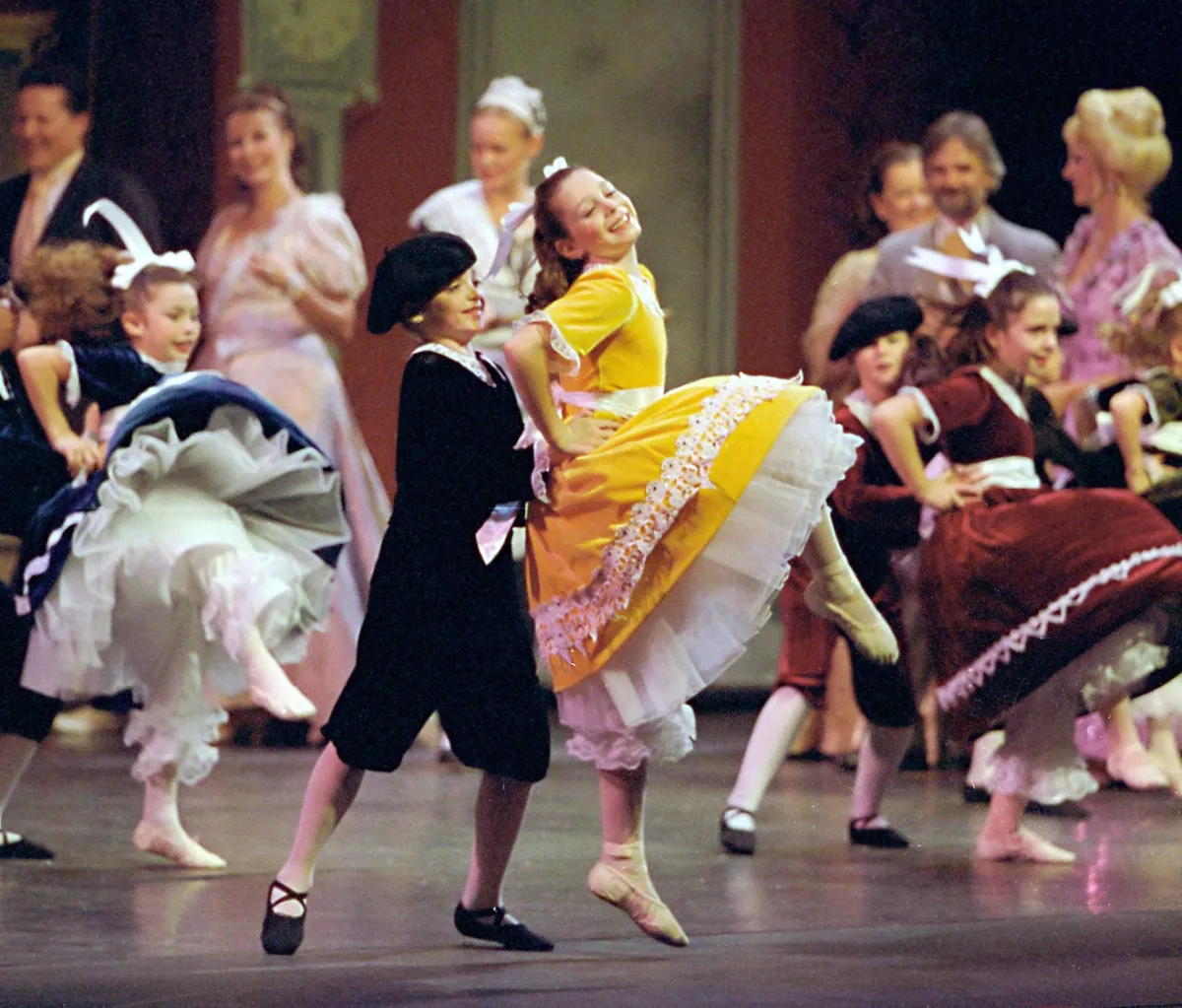 My daughter in the yellow dress is playing the role of Clara in the Nutcracker ballet. I took the picture at the dress rehearsal where I could freely move around the theater with my camera. I think it's a wonderful, joyous picture.