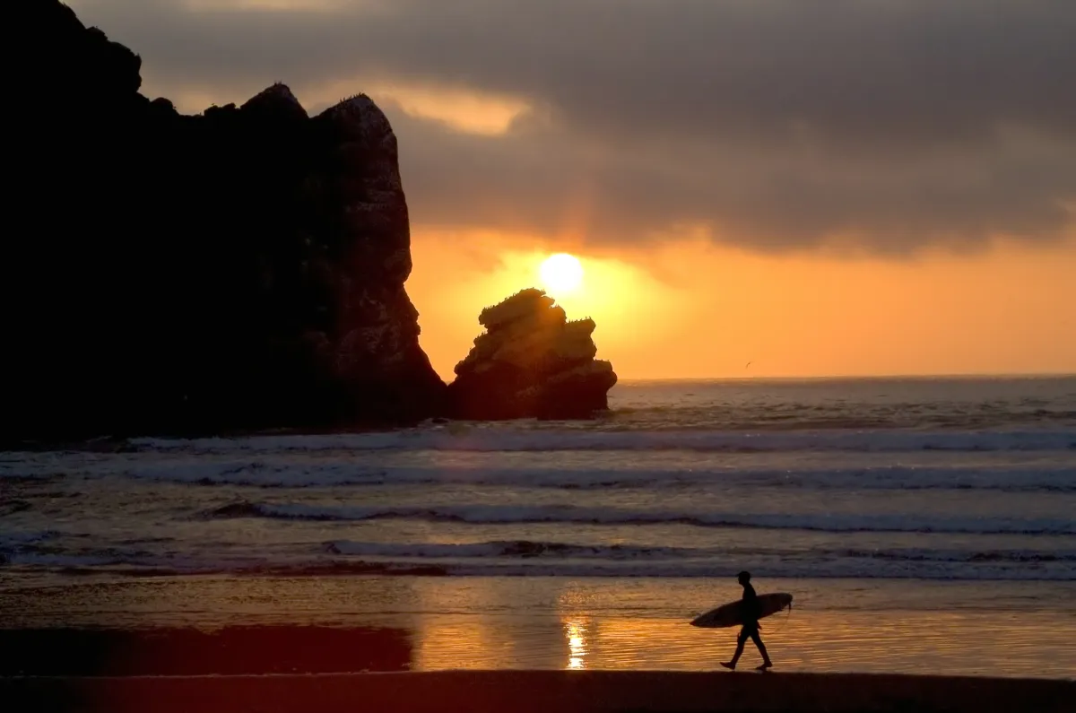 I was siting near Morro Rock taking pictures of the sunset and the surfer came in as the light faded and just kept looking back at the sun as if he was dissapointed that the day was over. He looked over his shoulder back at the waves and the setting sun all the way back to his car -- kind of giving it the "I'll be back look."