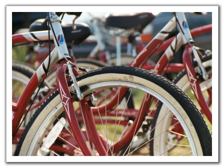 We were on vacation in Block Island, RI in August of 2003. Right after breakfast as I was walking though town, I came across a bike rental with all red bikes. So I snapped this photo of their well used wares.