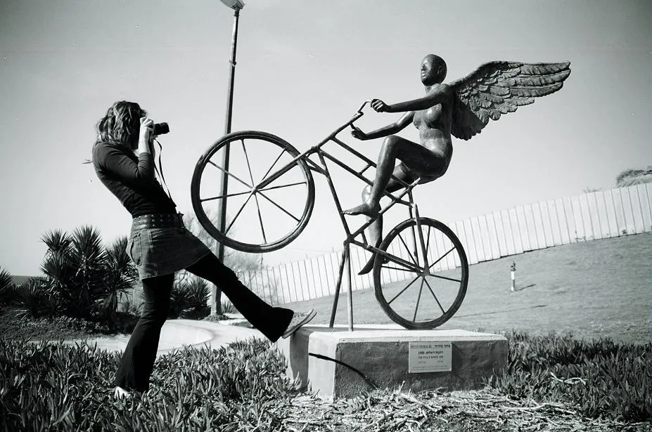 I shot this picture near the beach of Herzelia City. The girls standing position looks like a part of the statue and composition is beutiful. You don`t see a pose like this everyday.