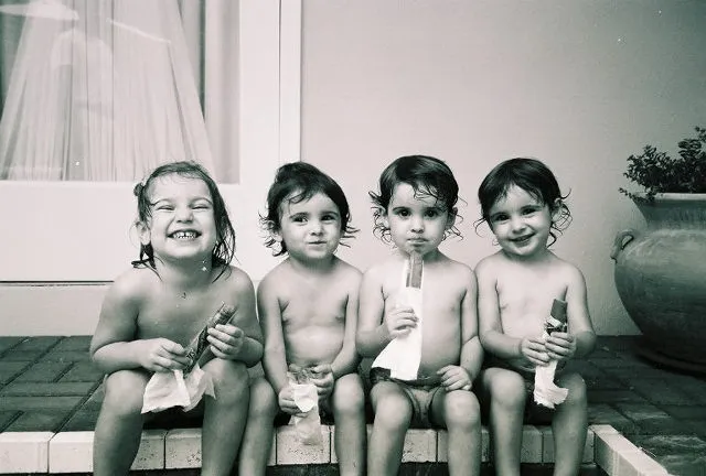 This is a beautiful picture of my four girls taken in our backyard after swimming. Claire, age 3 1/2, and her identical triplet sisters, Mary Jane, Campbell and Grace, ages 2 1/2. They love freezer pops and Mom doesn't let them eat them inside (very often).