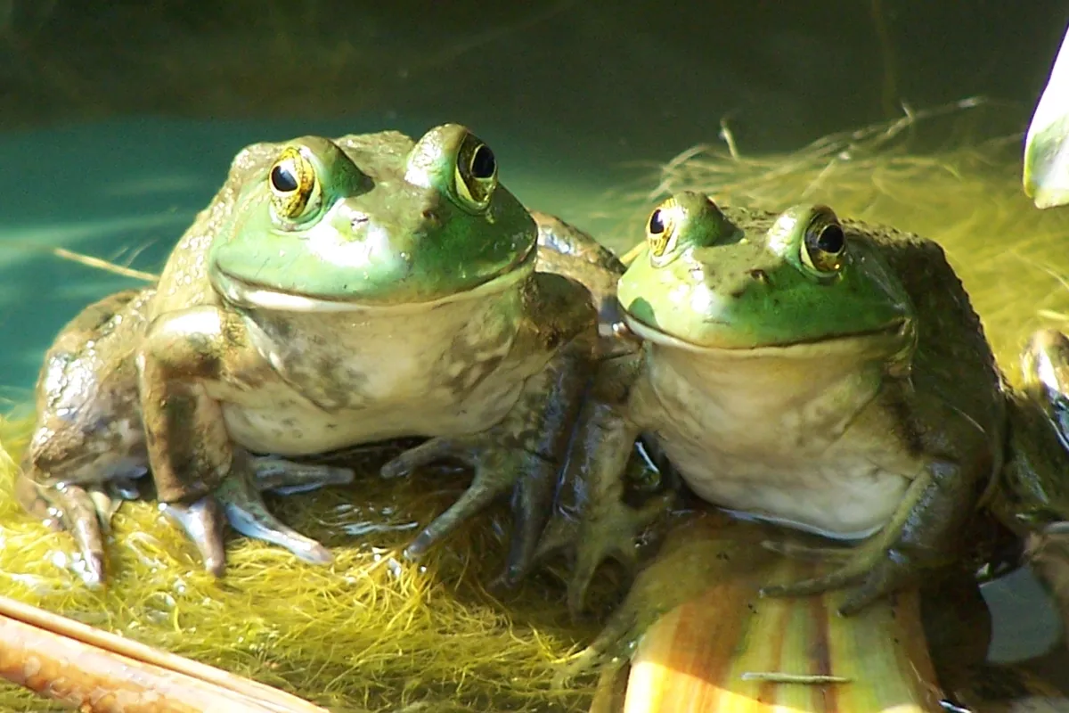 This picture was taken in our garden pond in August 2004. We watched the frogs grow up from tadpoles to the hansome prince and princess of the pond.