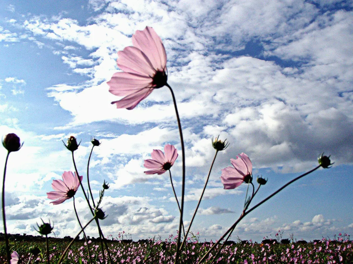 Late fall wildflowers, appropriately called in Spanish mirasol [looks at the sun], turn like colorful