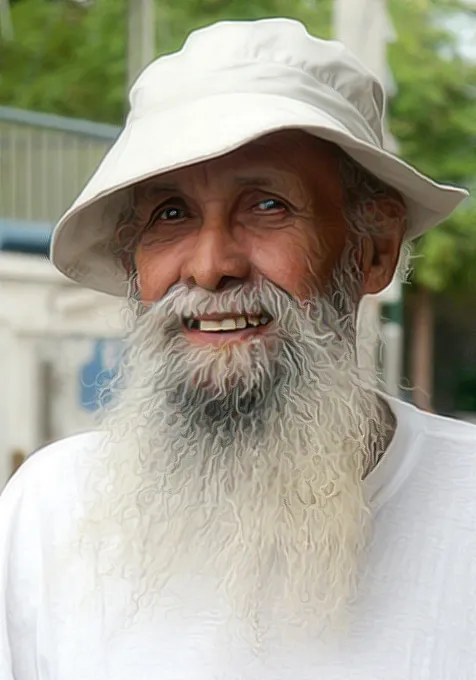 I came across this guy in a fishing port in southern Puerto Rico in March 2004. He seemed to be a character and let me take his photo. To obtain this effect I oversharpened it and then applied a diffuse filter to it -- and really like the way his face and beard looked like a painting.