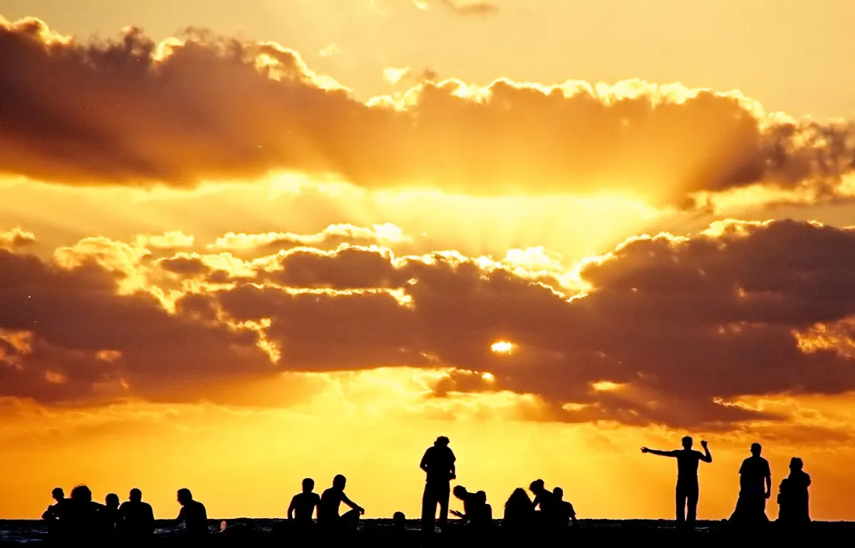 This photo is a combination of people, color, and nature. It was taken at Tel Aviv Beach, Israel, in 2003.