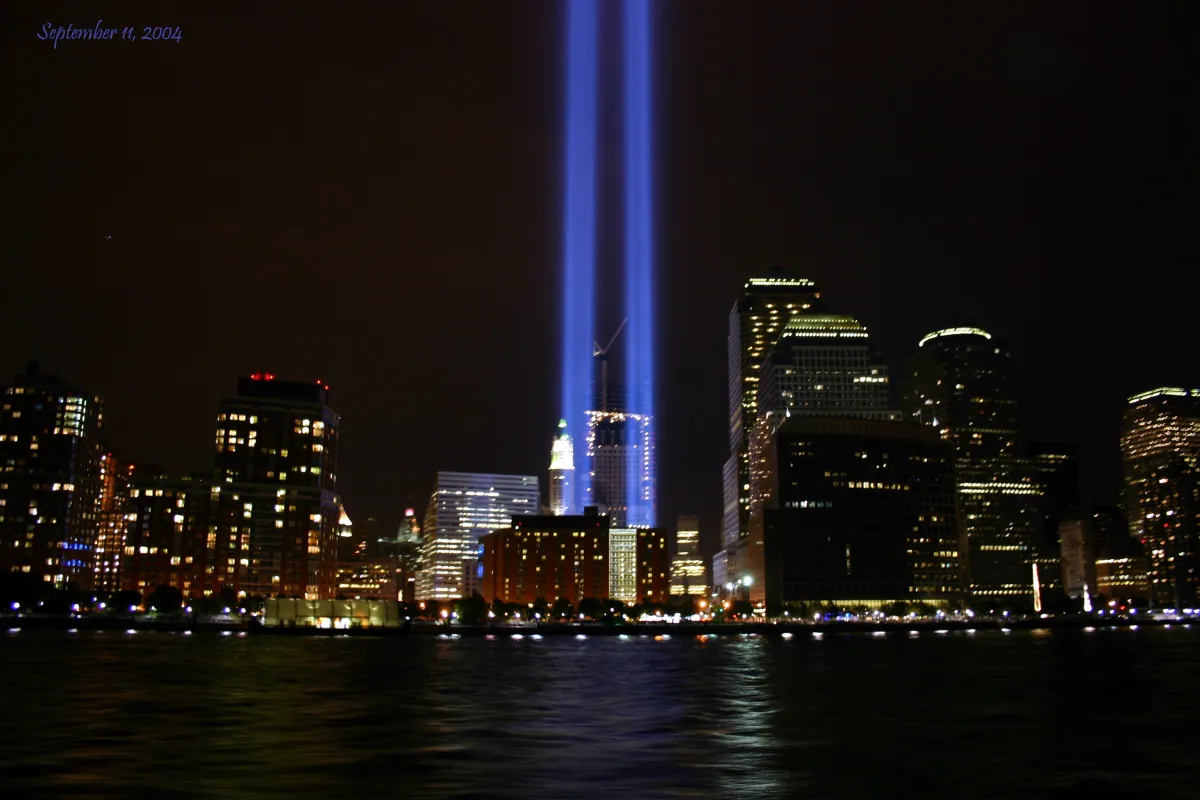 A memorial to the World Trade Center, Patriot Day 2004. This picture was taken during a dinner cruise around the New York harbor for my mother's birthday.