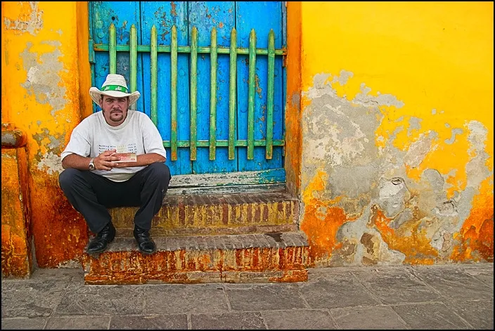 This photo was taken in June 2005, in Oaxaca, Mexico. Although you see a lot of older cars on the streets, few are as old as this vintage Chevrolet. I liked the interplay of colors.
