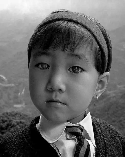 A portrait of a little girl at her innocence best, with confidence in her little eyes. The picture was taken in a remote village in the Himalayas.