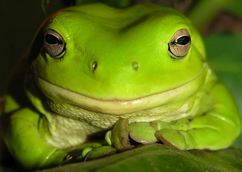 This Australian Greentree Frog has such a beautiful smile :-) I took this photo in the backyard of my house. He was sitting in a potted plant.