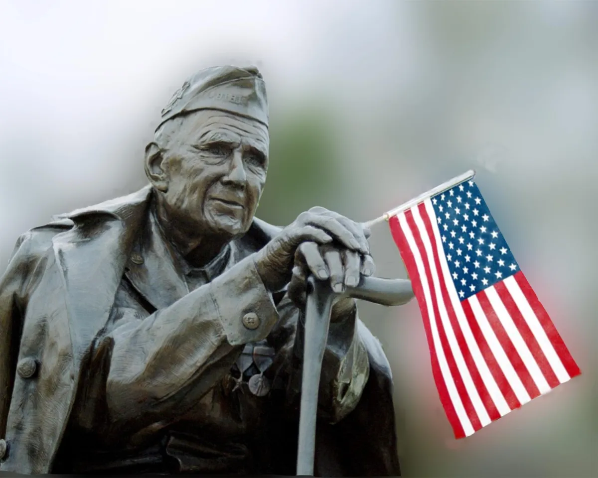 Collegedale, TN. This statue of a WWII Veteran sits on a bench at the entrance to a new Veteran's Memorial in Collegedale, TN. The park has a Blackhawk, a Sherman Tank, and other military artifacts. There is something about this old vet that speaks to my heart - and to me, he represents all that is good about America. I wanted to capture his medals, so I mounted my camera on a tripot and shot from a low angle.