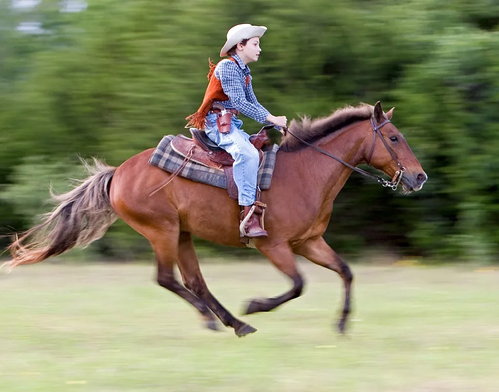 A young cowboy and his pony enjoy racing near sunset. I took the picture near Austin, Texas.