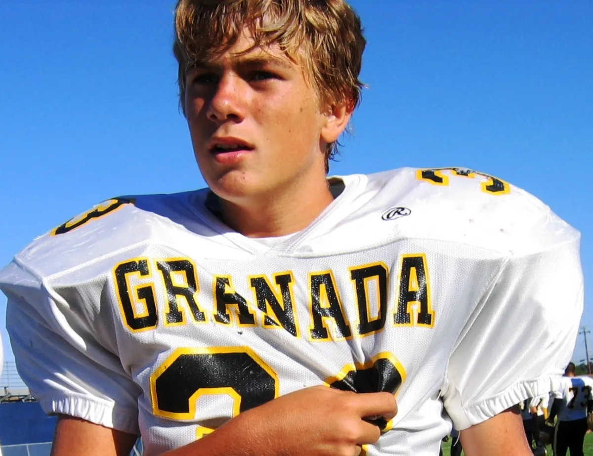 This is a picture of my oldest son who just started high school. The picture was taken at his very first freshmen football game. The composition of the photo makes him look so proud and mature as he, without knowing, is turning into a man right before my eyes.