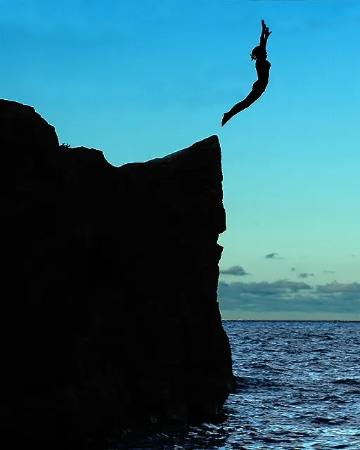 To me, this photograph conveys freedom. Fear lost; the attempt at, and short lived duration of, flight; the extension of the woman's form as if she is an extension of the cliff, as if an extension of, and intertwined with, nature.