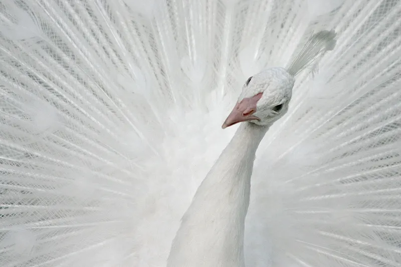 A beautiful White Peacock on display. Picture was taken in May 2006, in Pinellas County, Florida.