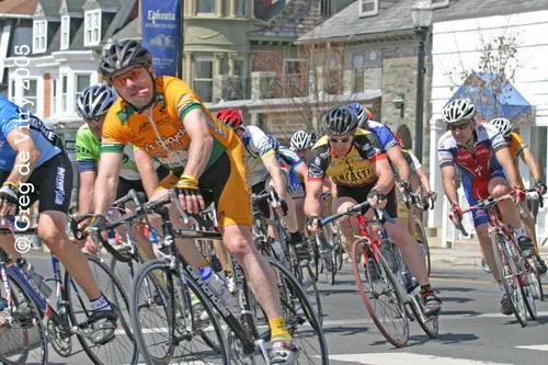 My husband in the Tour of Ephrata. I guess, wanting to acknowledge me and not being able to wave his hand, he stuck out his tongue.
