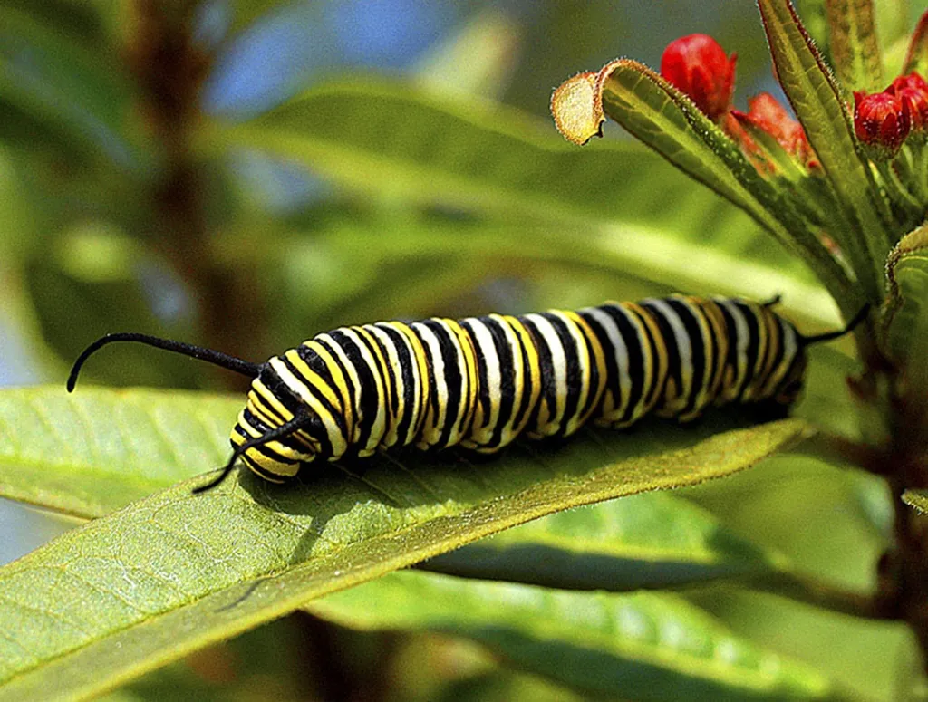 This little fellow with his fake antena to fool his enemies will soon turn into a beautiful Monarch Butterfly.