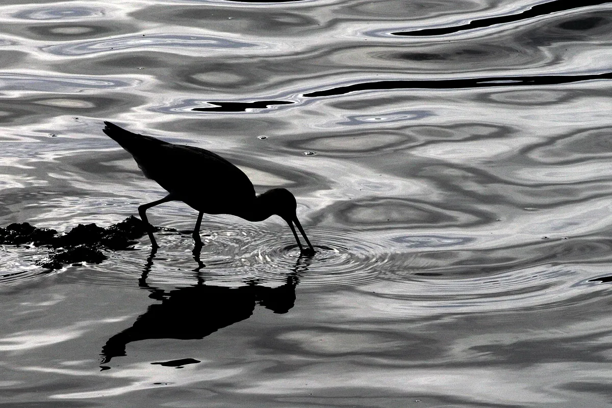 Local sandpiper wading for food. Photograph was taken on the intra-coastal waterway in Venice, Flordia in late evening. Sun was casting some interesting reflections and backlighting.
