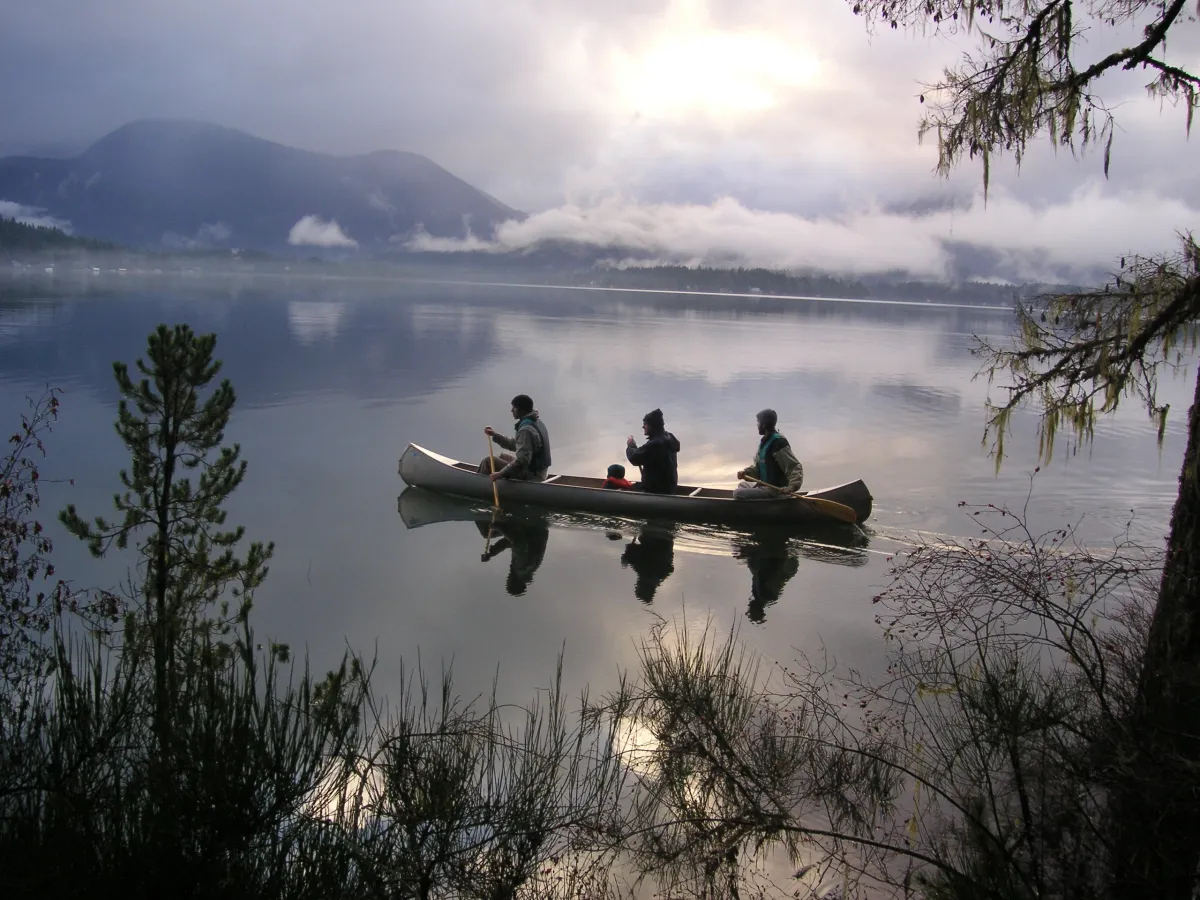 This photo was taken a few days after Christmas 2005, at Spray Lakes, B.C. It was the first Christmas that my family was somewhere where they could go canoeing, and they did! The atmosphere was rather eerie and still, and I clicked many shots trying to capture that feeling. Canoeing is a peaceful way to enjoy the beauty of nature.