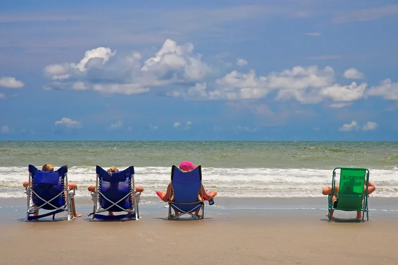 Making use of a relaxing chair, by the shore, is one of the more popular pastimes, at Pawleys Island, South Carolina.