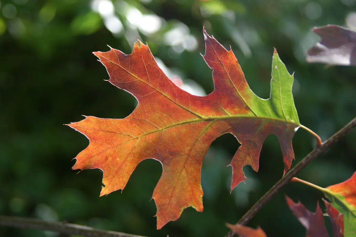 I caught this leaf mid-color change in our yard in Oklahoma in October 2006.