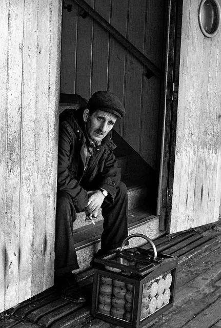 The man looks like somebody that's ready to give up -- tired of the hard work and life problems.