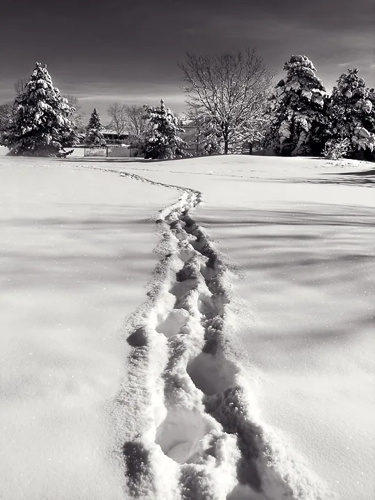The lighting from the tree really created slight but interesting patterns in the wind-blown snow.