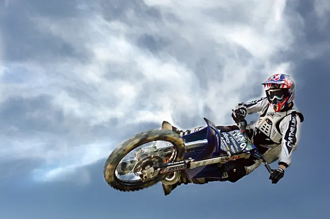 This is my good friend Paul -- he's an incredible rider. I took this image of him as I was standing on the landing ramp and he was coming in. I positioned him in the clouds so the formation was coming from behind. I thought it gave it a neat effect.