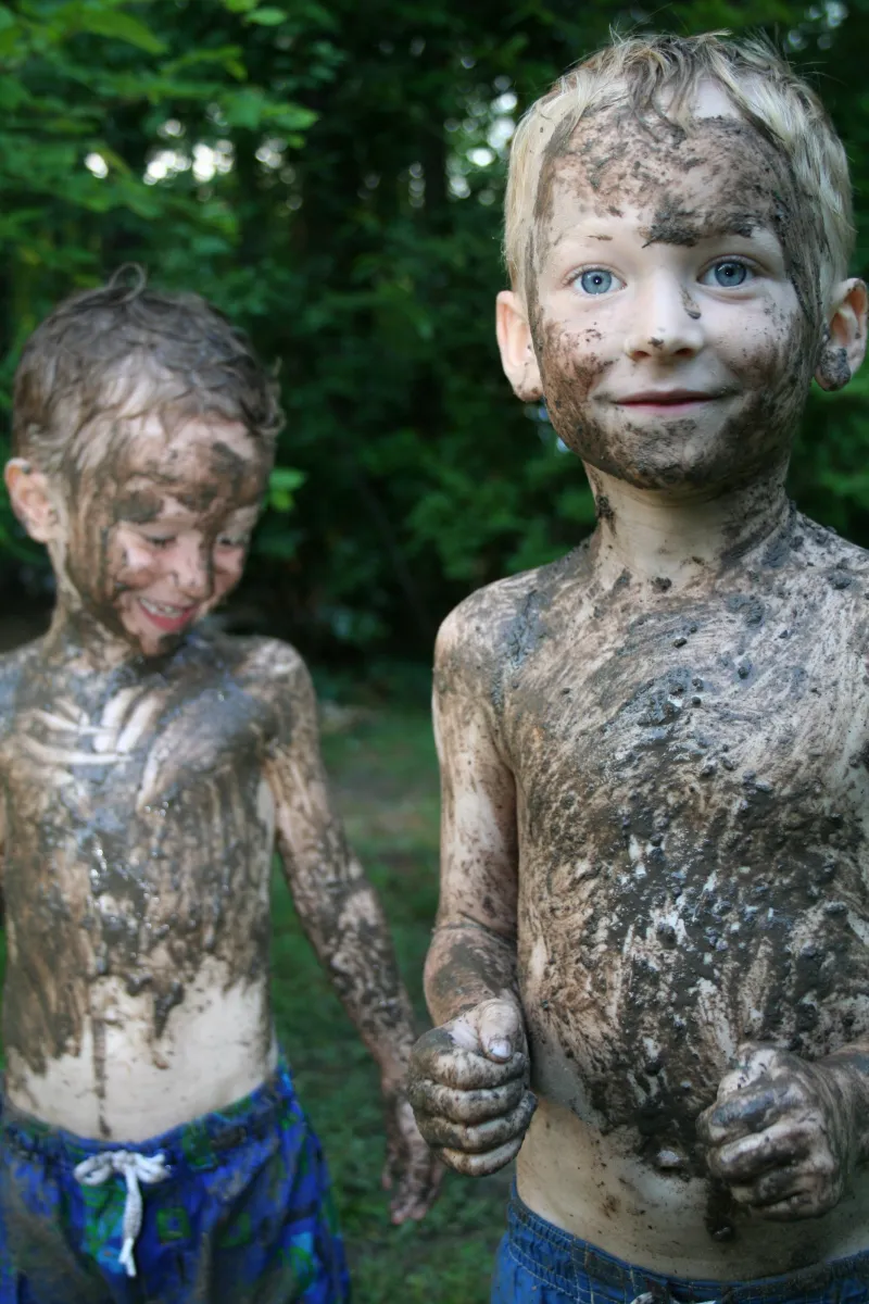How much fun can twin brothers have when mom is not looking? Here is our answer. Big sister was the real artist of this scene as she painted the boys during an afternoon in the sprinkler. This is the kids version of Family Fun!