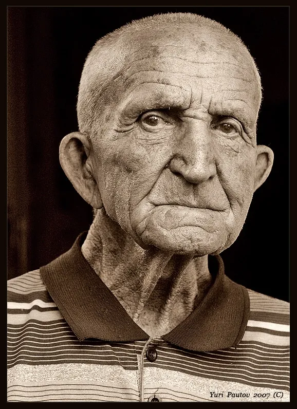 Alexandr is 80. He lived in the country Krugloye near the city I live in. He is my friend's father. My friend lives in Siberia, 3000 km from here. He visited his father each year. This summer Alexandr's house was burned down. My friend took him to Siberia and now I'm not sure if I will see him again, it's SO far away. I took Alexandr's portrait in August 2007 before they went to far away journey. It's very touching, that Alexandr liked when I took his photos.