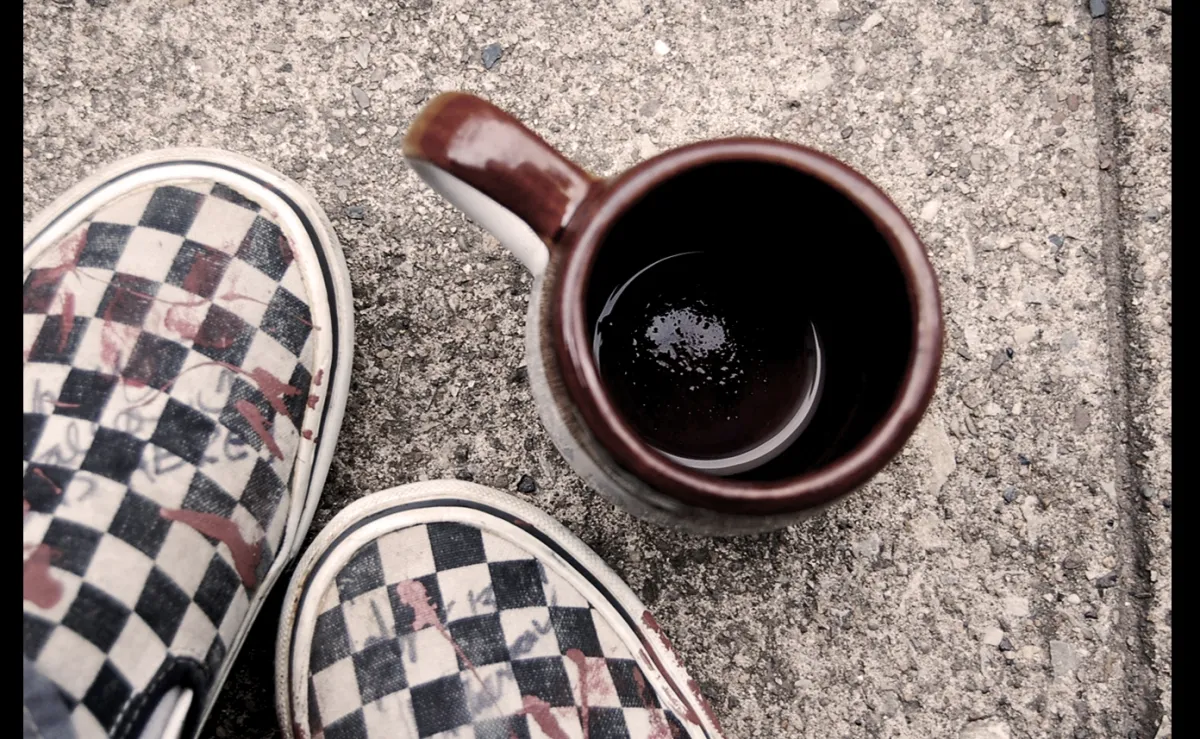 This is a picture of some shoes, and an empty mug, previously filled with hot chocolate. It was taken on an Autumn day, and the photo gives me a warm feeling inside everytime I look at it.