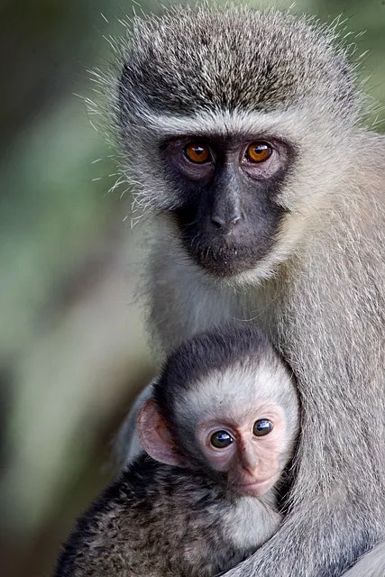 I spotted a troop of vervet monkeys moving through Mountain Zebra National Park in South Africa. This mother hugged her baby close. I was taken with their eyes, both so intense.