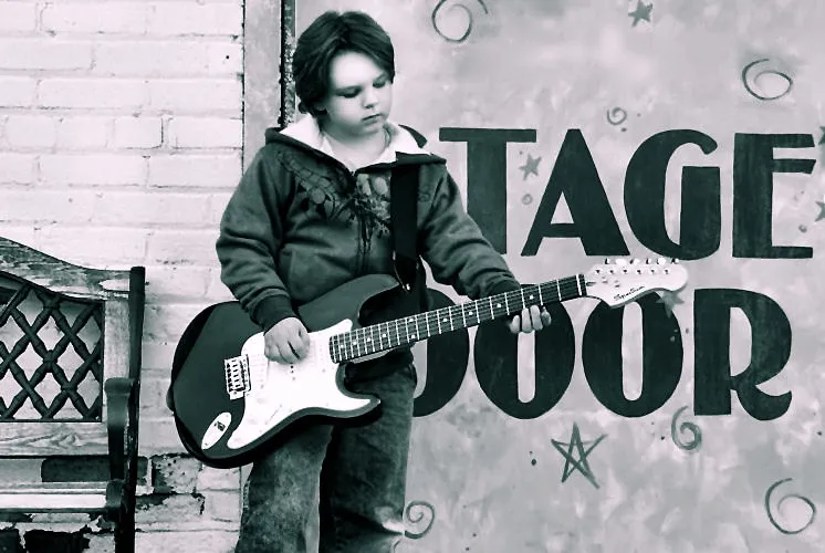 This is my second grade nephew playing his guitar outside of a local theatre! Despite his young age he loves a crowd, LOL!!! :)