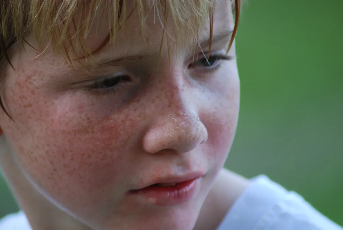 This is a close up of my oldest son after a football throwing session with Dad. His features are great and you can see the sweat and gatorade on his lip.