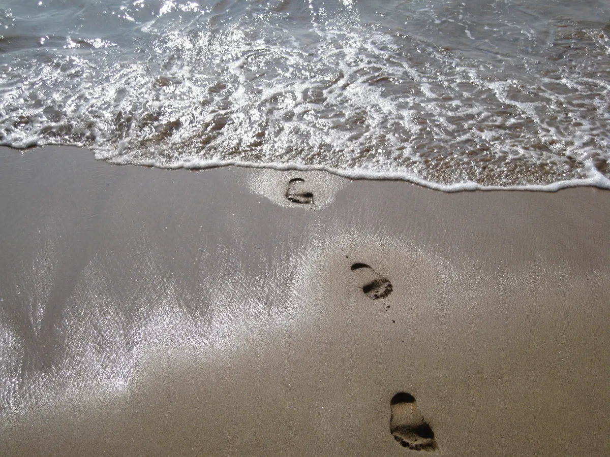 During our first day in Hawaii during May 08 my husband and I were eager to get in the water. However, we quickly found out the water was extremely cold. All I could do was run away from the water as soon as it hit my ankles, and my husband took a picture of my tracks.