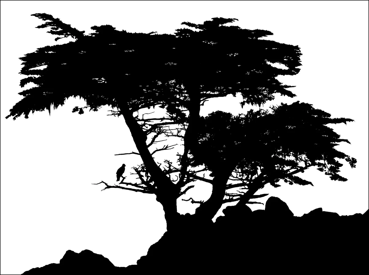 This often photographed cypress tree clings tenaciously to a rocky outcropping on 17-Mile Drive near Pebble Beach, California. I was in California on vacation when I took the picture and the day was rainy, cold and misty. I really wanted a souvenir photo so despite its poor quality, I decided to play with it in a digital editing program and was pleased to see a silhouette emerge when I adjusted the levels. I can't imagine being more pleased with a full color version.